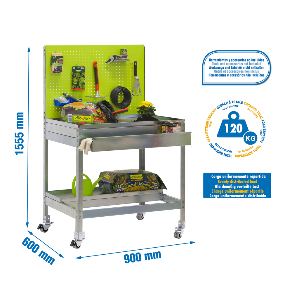 Établi de jardin - 1520x900x600 - 2 niveaux Vert - SIMON RACK - 8435104988879