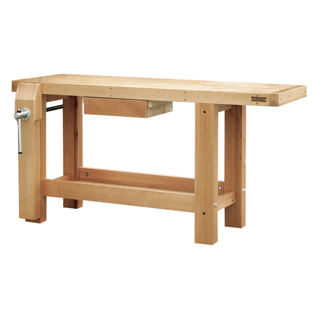 Cet établi est idéal pour les professionnels et les passionnés de bricolage. Son plateau en bois multiplis de 70 mm d'épaisseur offre une surface de travail solide, tandis que la ceinture en bois massif renforce la structure. Il est équipé d'une presse avant verticale avec une mâchoire en bois et une vis en acier de 26 mm pour assurer un maintien optimal des pièces à travailler. Pour un usage quotidien, il est recommandé de veiller à la stabilité de l’établi et d'utiliser la presse pour sécuriser vos matériaux.