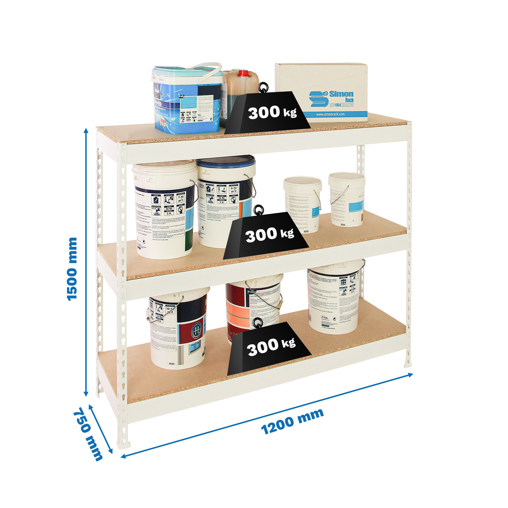 Étagère charge moyenne 500 à 600kg - 1500x1200x750 - 3 niveaux Blanc/Bois - SIMON RACK - 8425437151934