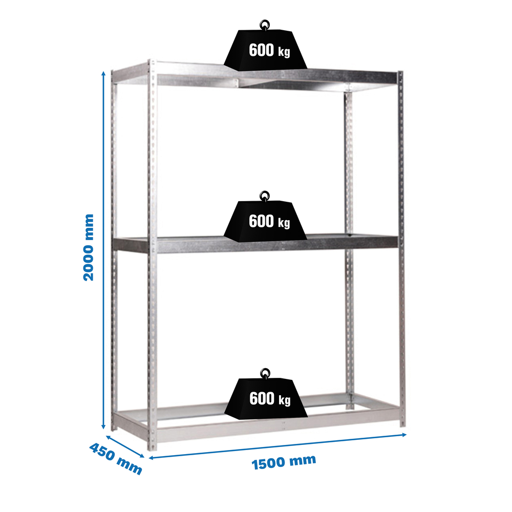Étagère charge moyenne 500 à 600kg - 2000x1500x450 - 3 niveaux Galvanisé - SIMON RACK - 8435104924969