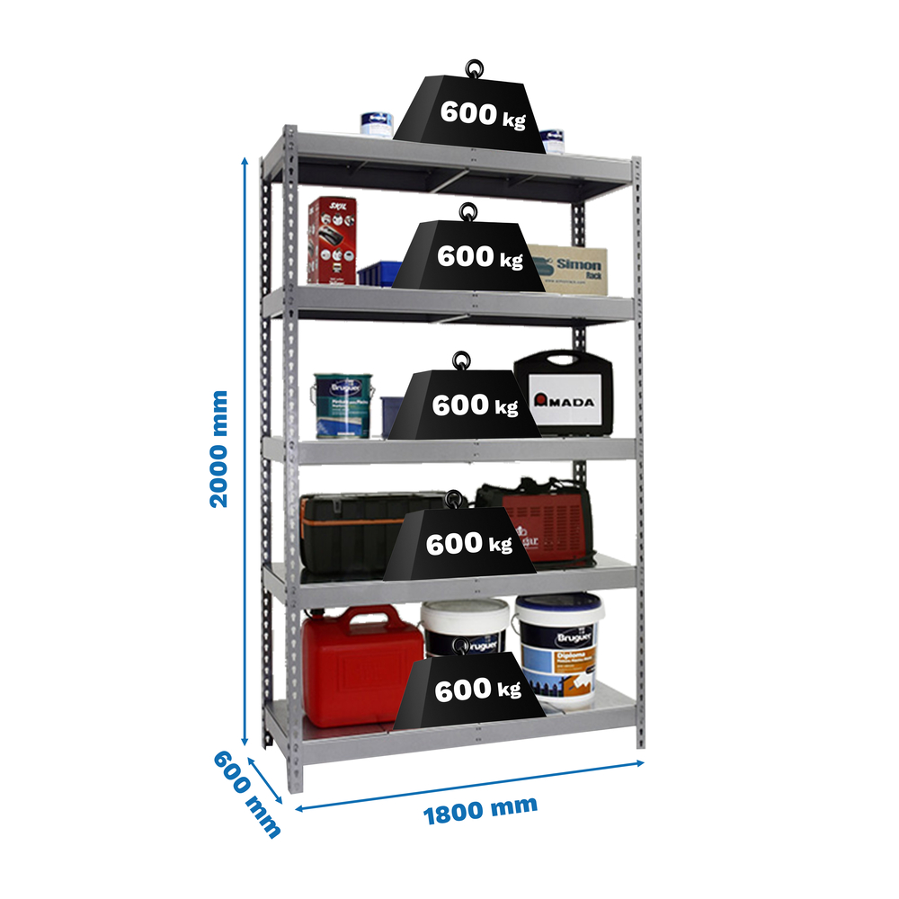 Étagère charge moyenne 500 à 600kg - 2000x1800x600 - 5 niveaux Gris - SIMON RACK - 8435104976388