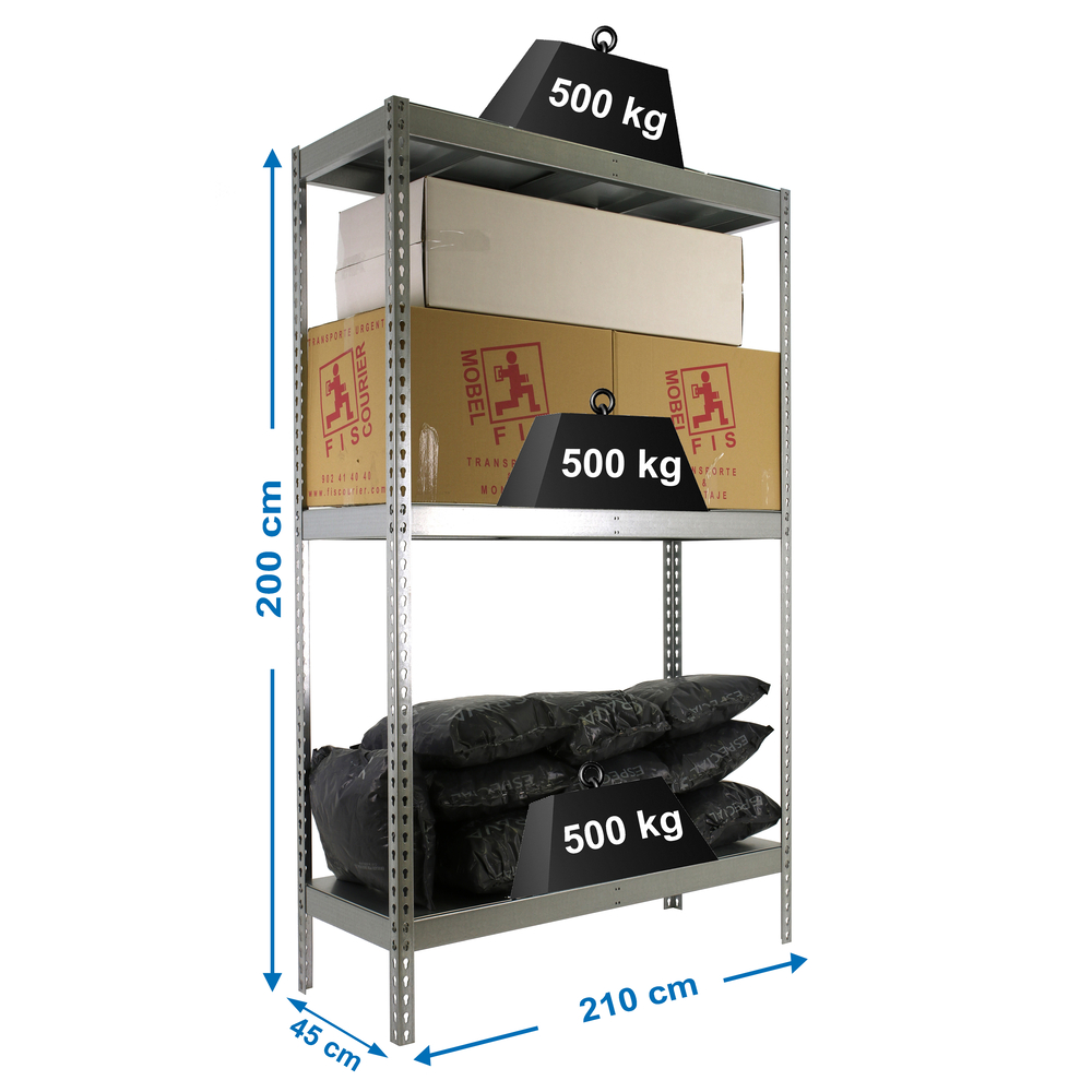 Étagère charge moyenne 500 à 600kg - 2000x2100x450 - 3 niveaux Galvanisé - SIMON RACK - 8425437081798