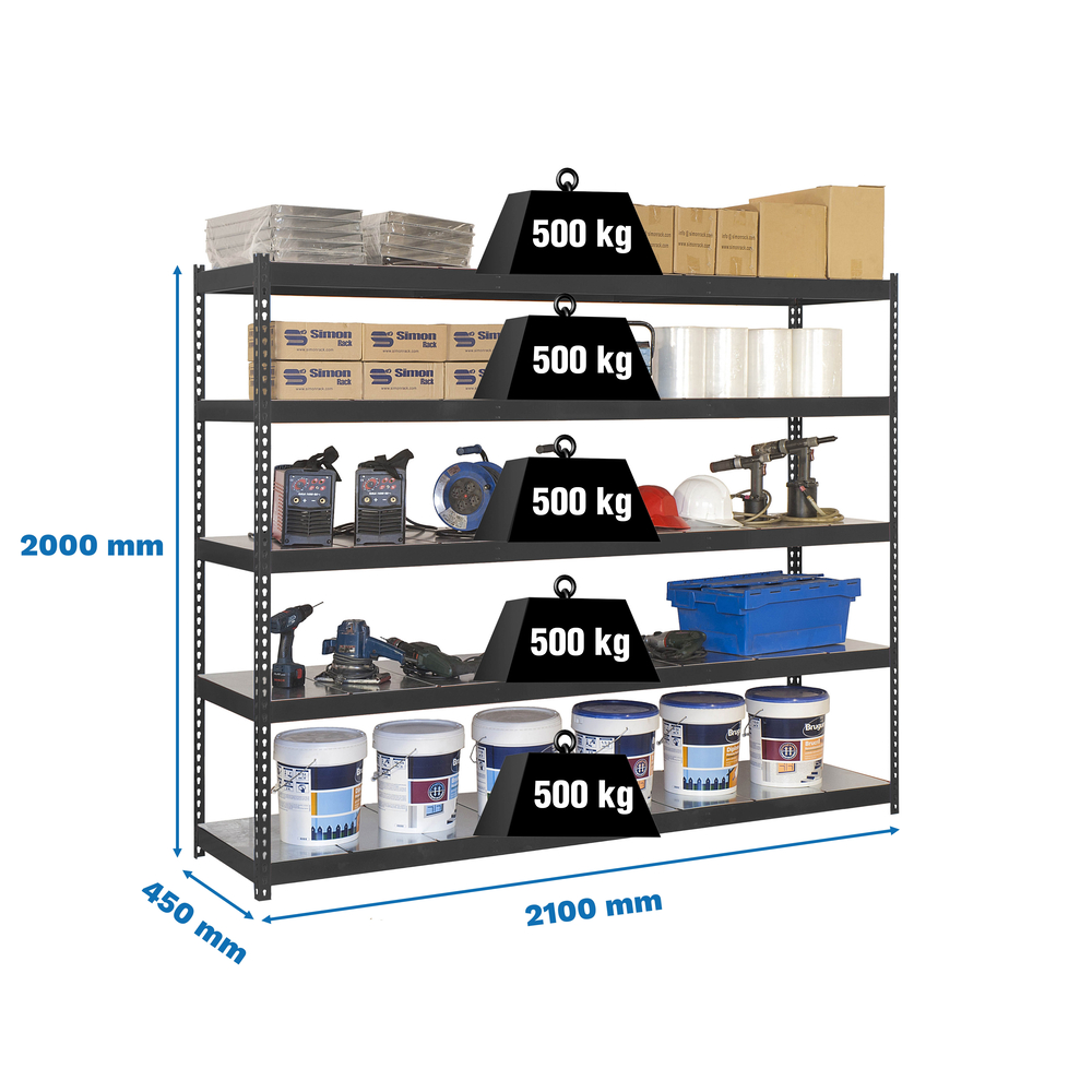 Étagère charge moyenne 500 à 600kg - 2000x2100x450 - 5 niveaux Anthracite - SIMON RACK - 8425437101830