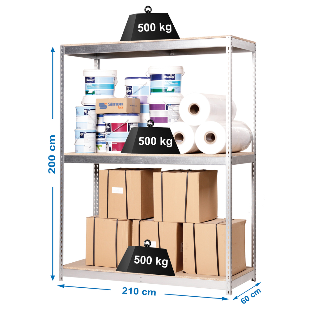 Étagère charge moyenne 500 à 600kg - 2000x2100x600 - 3 niveaux Bois - SIMON RACK - 8425437081491
