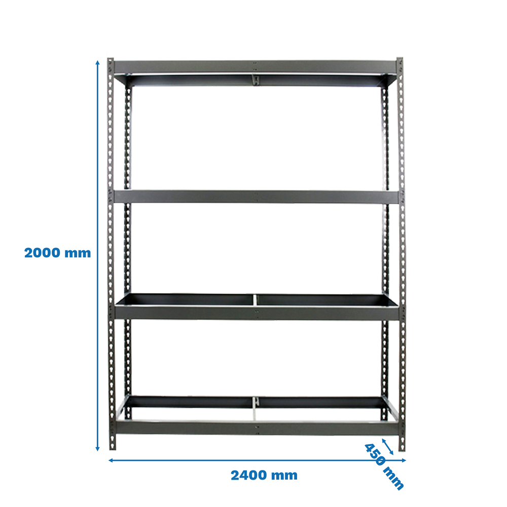 Étagère charge moyenne 500 à 600kg - 2000x2400x450 - 4 niveaux Gris - SIMON RACK - 8435104975954