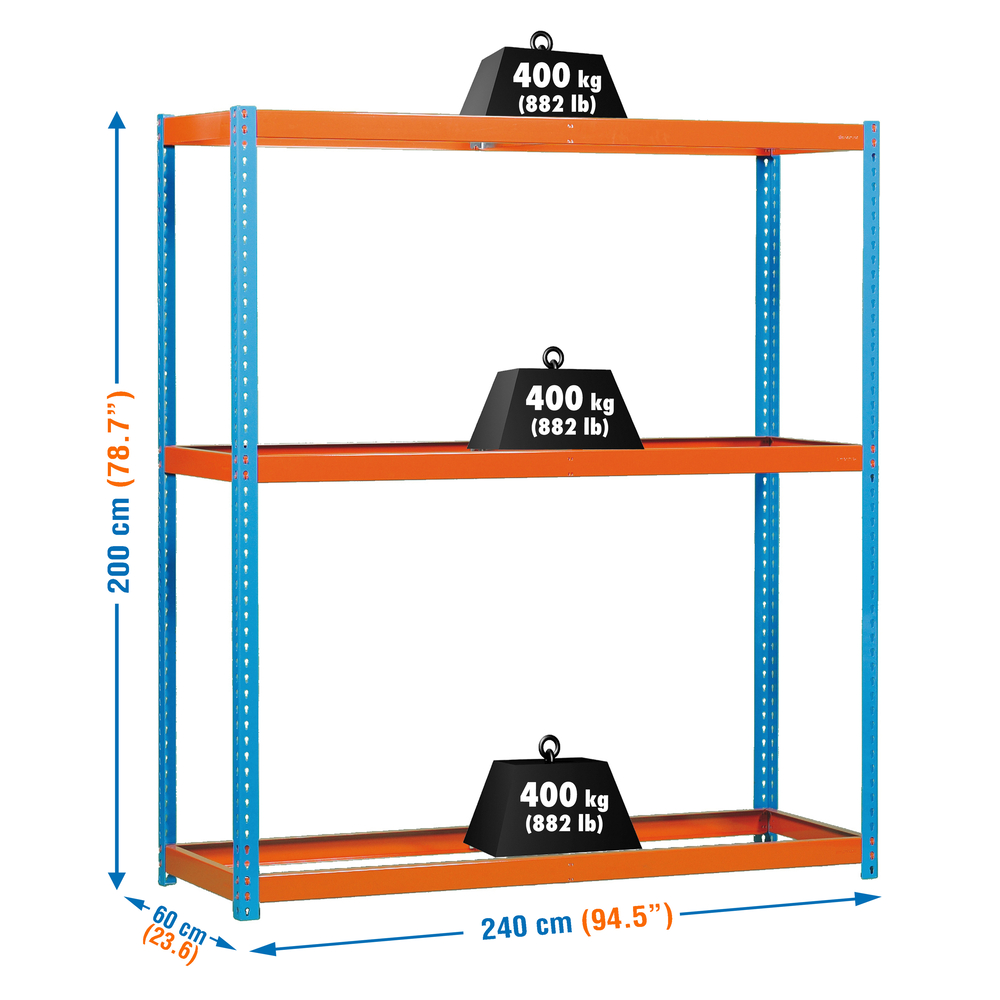 Étagère charge moyenne 500 à 600kg - 2000x2400x600 - 3 niveaux Bleu/Orange - SIMON RACK - 8435104911297