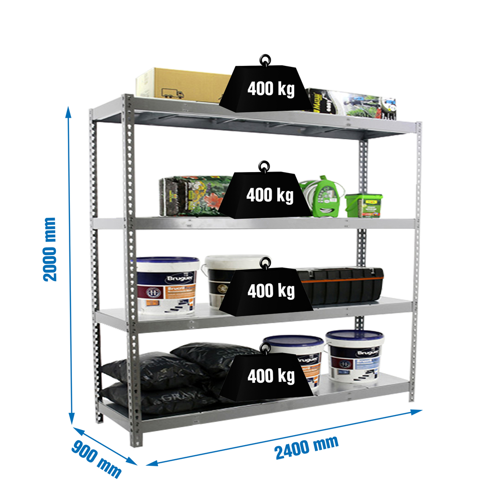 Cette étagère sans vis est conçue pour un montage rapide et facile. Avec ses quatre niveaux, elle offre une capacité de charge exceptionnelle de 400 kg par niveau, permettant une charge totale atteignant 1600 kg. Sa conception robuste, composée de plateaux métalliques, garantit durabilité et résistance. Ses dimensions de 2000 mm de hauteur, 2400 mm de largeur et 900 mm de profondeur en font un meuble adapté à divers environnements, que ce soit dans un garage, un entrepôt ou un espace de stockage.