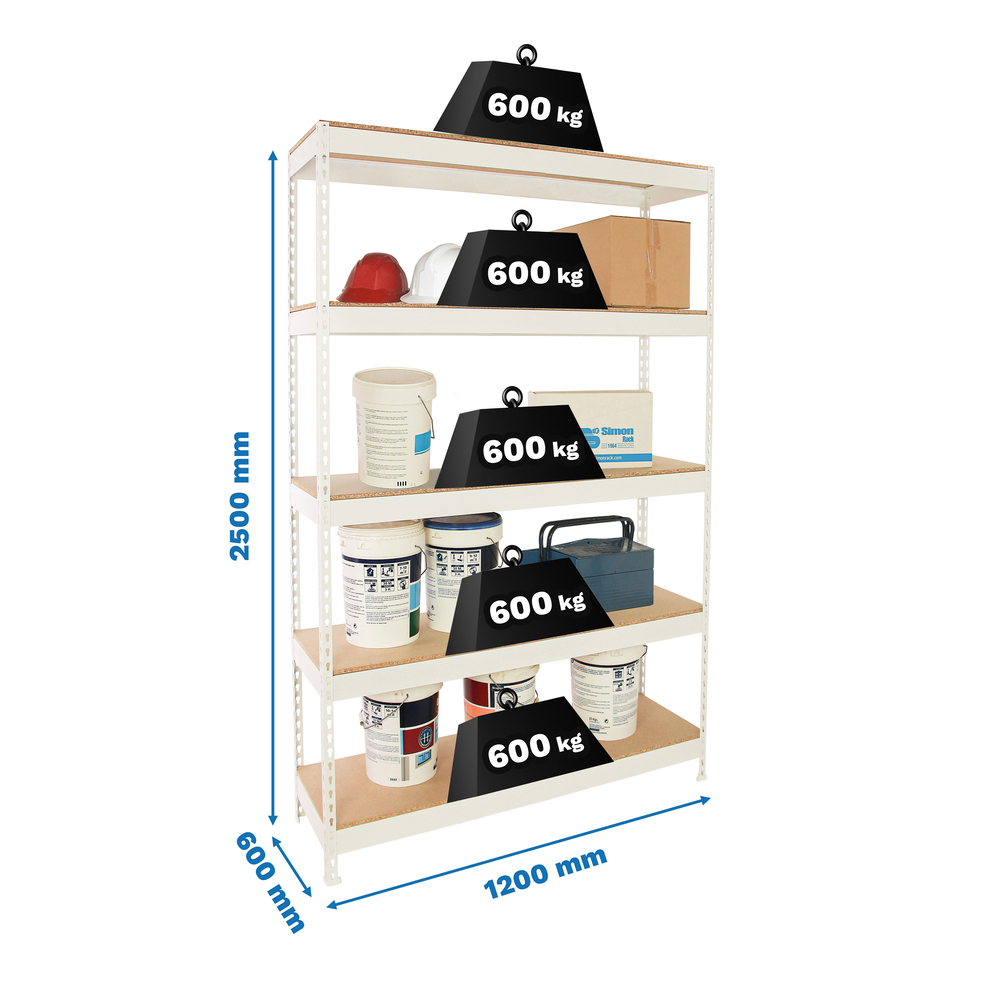 Étagère charge moyenne 500 à 600kg - 2500x1200x600 - 5 niveaux Blanc/Bois - SIMON RACK - 8425437151897