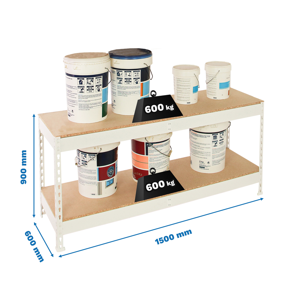 Étagère charge moyenne 500 à 600kg - 900x1500x600 - 2 niveaux Blanc/Bois - SIMON RACK - 8425437152122