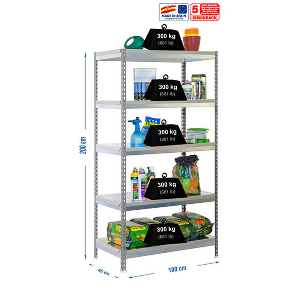 Étagère de jardin - 2000x1000x450 - 5 niveaux Gris - SIMON RACK - 8435104988053