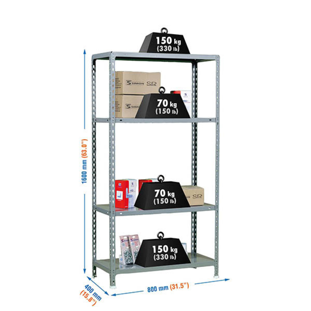 Étagère en kit charge légère sans vis 1500x1000x400 - 4 niveaux Gris - SIMON RACK - 8435104956120