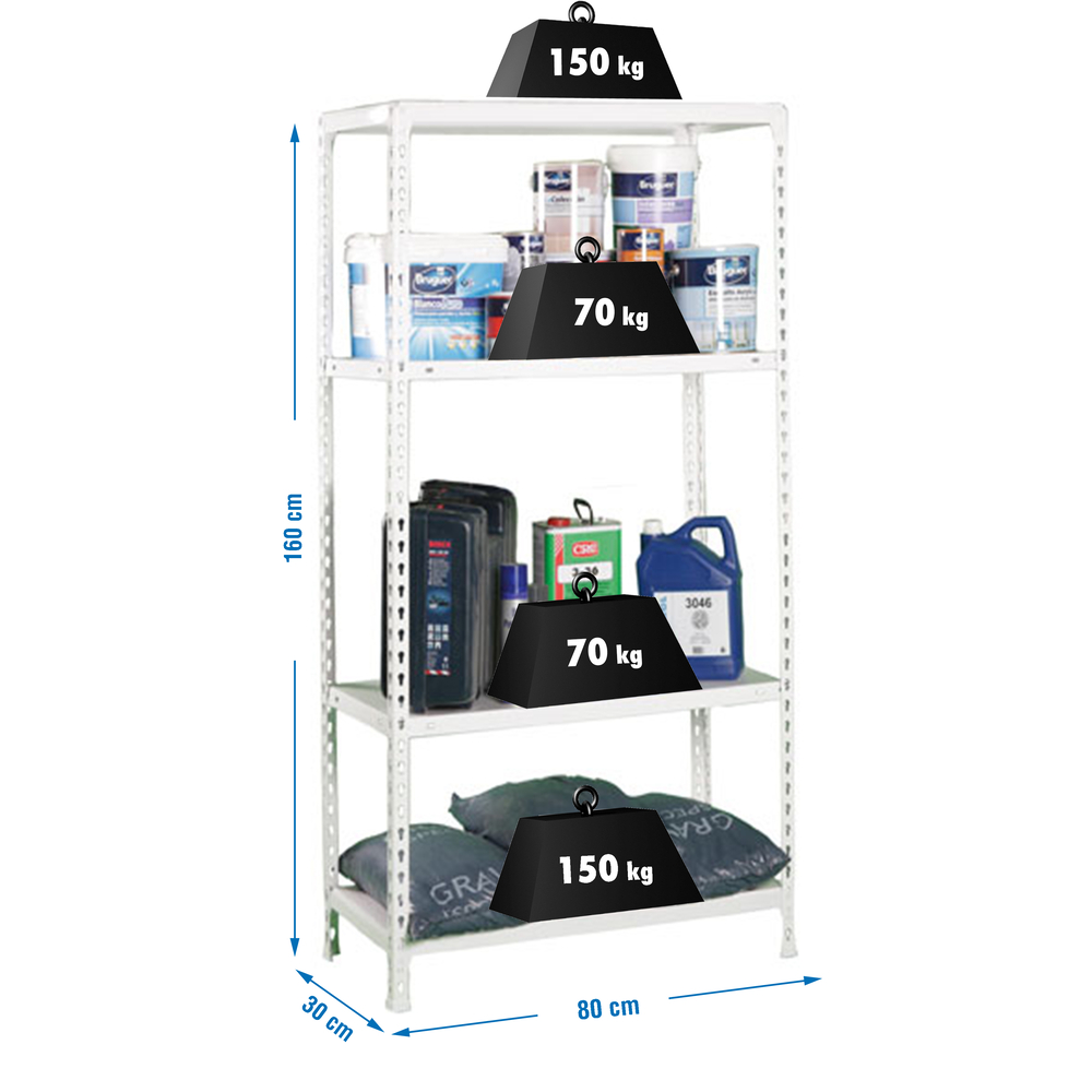 Étagère en kit charge légère sans vis 1600x800x300 - 4 niveaux Blanc - SIMON RACK - 8435104937396