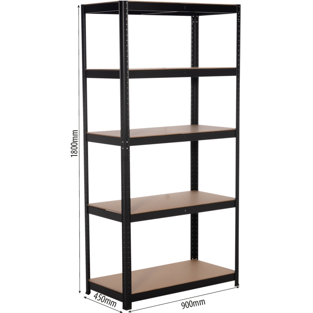 Découvrez Etagère métallique noire à emboîter 5 tablettes bois 1800x900x450mm max 1,25T STILKER - 09070 disponible à l'achat