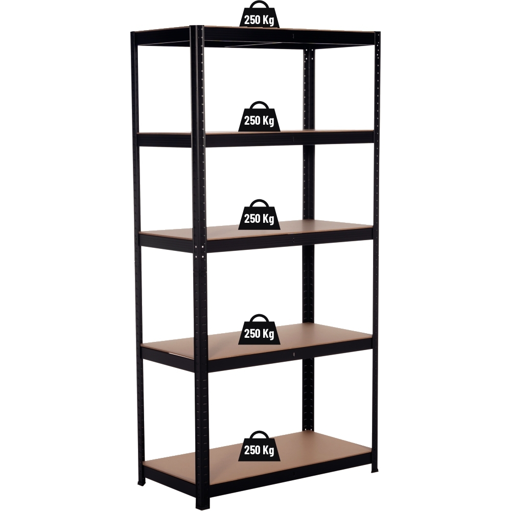Etagère métallique noire à emboîter 5 tablettes bois 1800x900x450mm max 1,25T STILKER - 09070