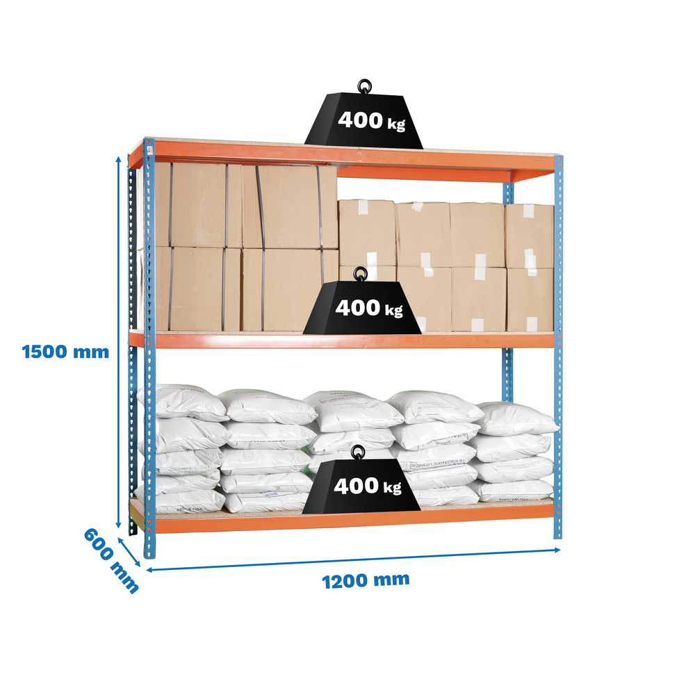 Étagère charge moyenne 400kg - 1500x1200x600 - 3 niveaux Bleu/Orange/Bois - SIMON RACK - 8435104961537
