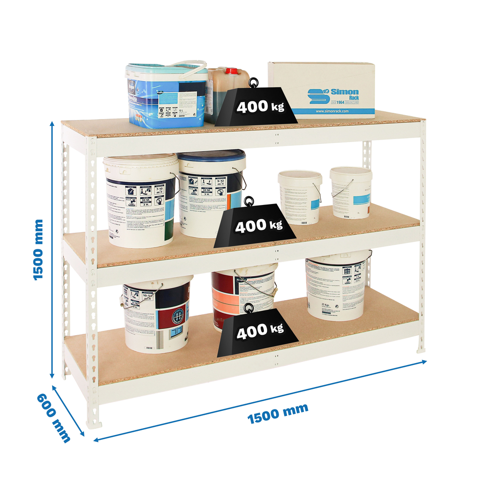 Étagère charge moyenne 400kg - 1500x1500x600 - 3 niveaux Blanc/Bois - SIMON RACK - 8425437150807