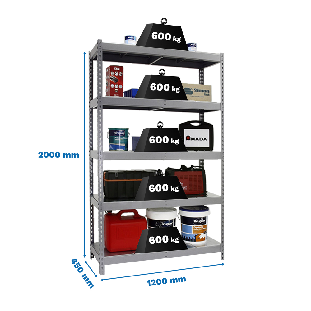 Réalisée en métal de couleur gris, cette étagère mesure 2000 x 1200 x 450 mm et dispose de quatre niveaux, chacun supportant jusqu'à 400 kg. Sa capacité totale atteint 2000 kg, ce qui en fait un choix robuste et fiable pour divers types d'utilisation. Les plateaux métalliques garantissent durabilité et résistance, adaptés à une utilisation intensive. Cette étagère est fabriquée en Europe par Simon Rack, gage de qualité et de savoir-faire.