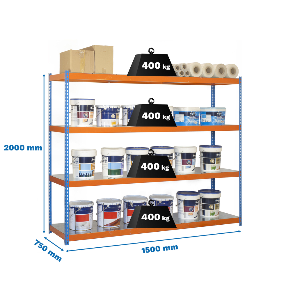 - Étageres robustes avec une capacité de 400 kg par niveau