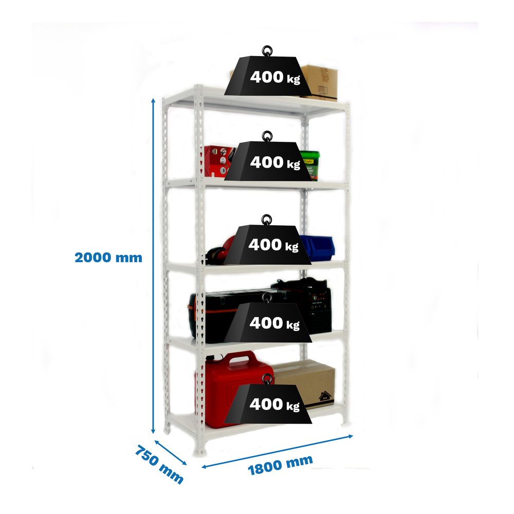 Les dimensions de l’étagère sont de 2000 x 1800 x 750 mm. Chaque niveau peut supporter un poids allant jusqu'à 400 kg, offrant ainsi une grande capacité de stockage. De plus, elle est fabriquée en acier galvanisé, garantissant résistance et durabilité. Cet équipement est sans plateau, ce qui favorise une flexibilité dans l’organisation de vos objets et matériaux.