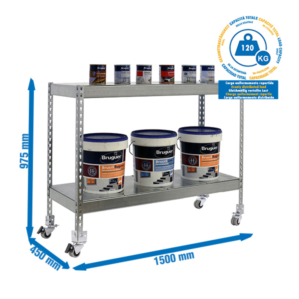Étagère mobile charge moyenne 75kg - 975x1500x450 - 2 niveaux Galvanisé - SIMON RACK - 8435104957479