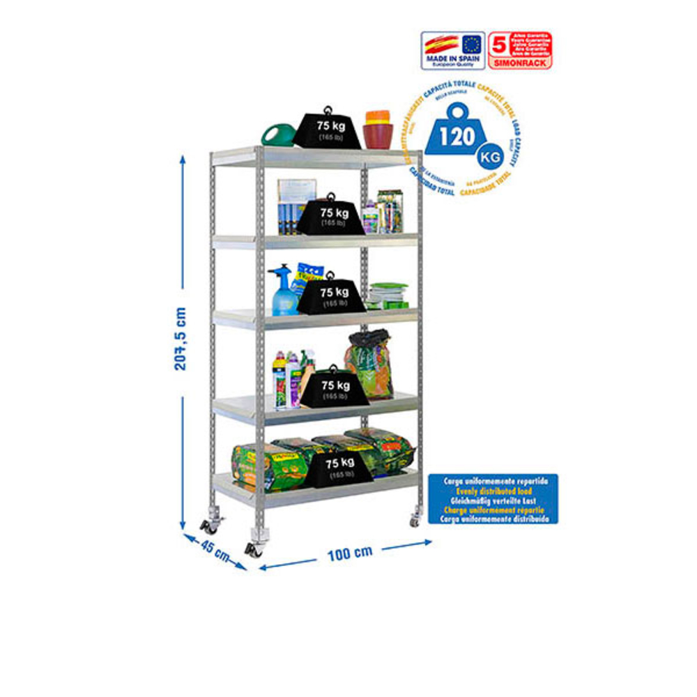 Étagère mobile de jardin - 2115x1000x450 - 5 niveaux Gris - SIMON RACK - 8435104988152
