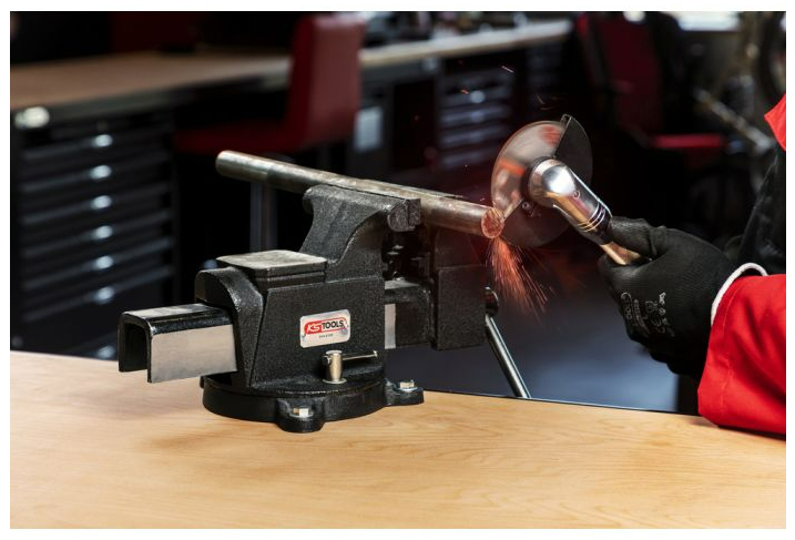 L'Étau KS TOOLS se distingue par sa base tournante, permettant une manipulation aisée sous différents angles. Son largeur de mâchoires de 200 mm et son ouverture maximale de 200 mm en font un outil performant, capable de s'adapter à divers types de pièces. La finition polie des mâchoires, de l'enclume et de la partie coulissante assure un maintien optimal sans abimer vos matériaux. Avec un poids de seulement 17 kg, cet étau reste facilement transportable tout en conservant une stabilité remarquable lors de son utilisation.