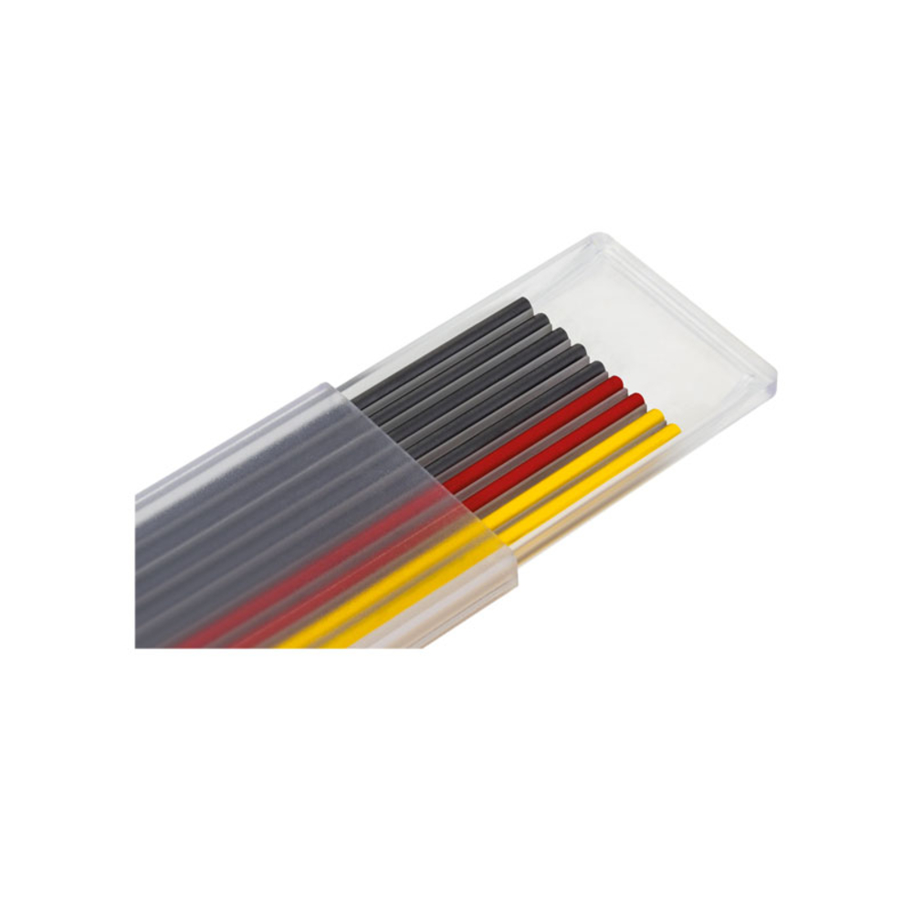 Découvrez notre étui de 9 mines de rechange spécialement conçu pour porte-mine, incluant 5 mines graphite, 2 rouges et 2 jaunes.