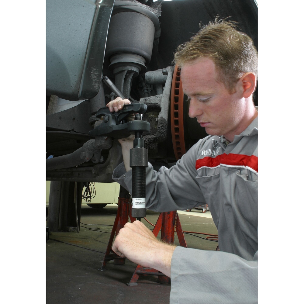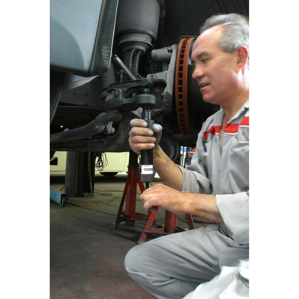 Conçu pour extraire des rotules, cet extracteur est particulièrement adapté aux poids lourds et cars, assurant une opération rapide et efficace. Sa puissance de 8 tonnes permet une extraction facile même dans des conditions de travail difficiles. Pour optimiser son efficacité, il est recommandé de l'utiliser sur des rotules de marques telles que Volvo, RVI, Scania, et Mercedes.