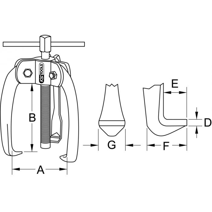 Équipé d'une poignée coulissante en T, cet outil offre une prise en main efficace pour un travail facilité. Les griffes auto-serrantes s'adaptent parfaitement aux cosses, garantissant une extraction sans effort. Il est recommandé d'appliquer une pression maximale de 0,75 t pour un fonctionnement optimal.