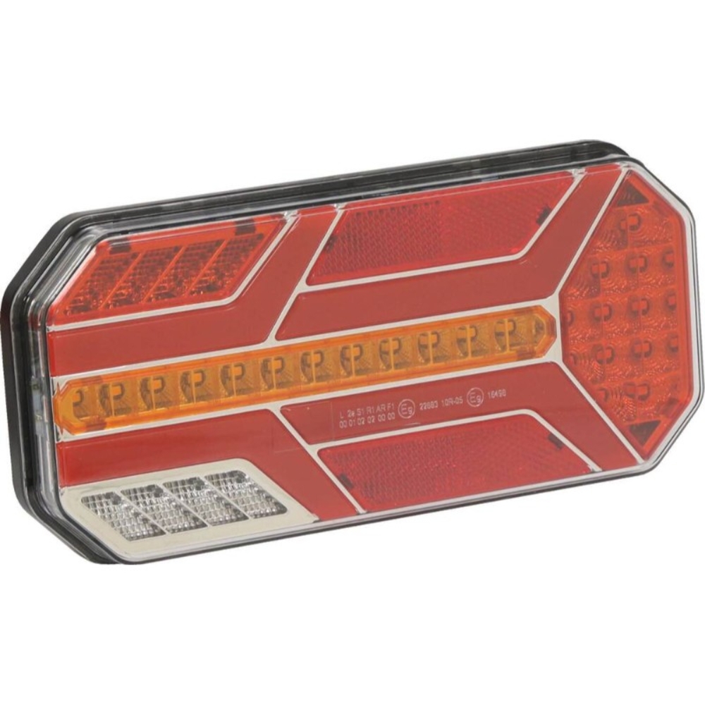 Fonctions feu de position, stop, recul, clignotant dynamique, anti-brouillard, éclaireur de plaque, catadioptre.