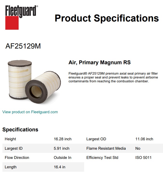 Découvrez FILTRE A AIR FLEETGUARD AF25129M EQUIVALENT A HIFI SA 16015 disponible à l'achat