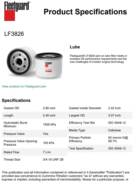 FILTRE A HUILE FLEETGUARD LF3826 EQUIVALENT AU HIFI SO 131