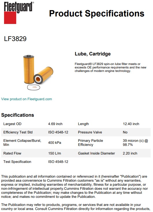 Découvrez FILTRE A HUILE FLEETGUARD LF3829 EQUIVALENT AU HIFI SO 131 disponible à l'achat