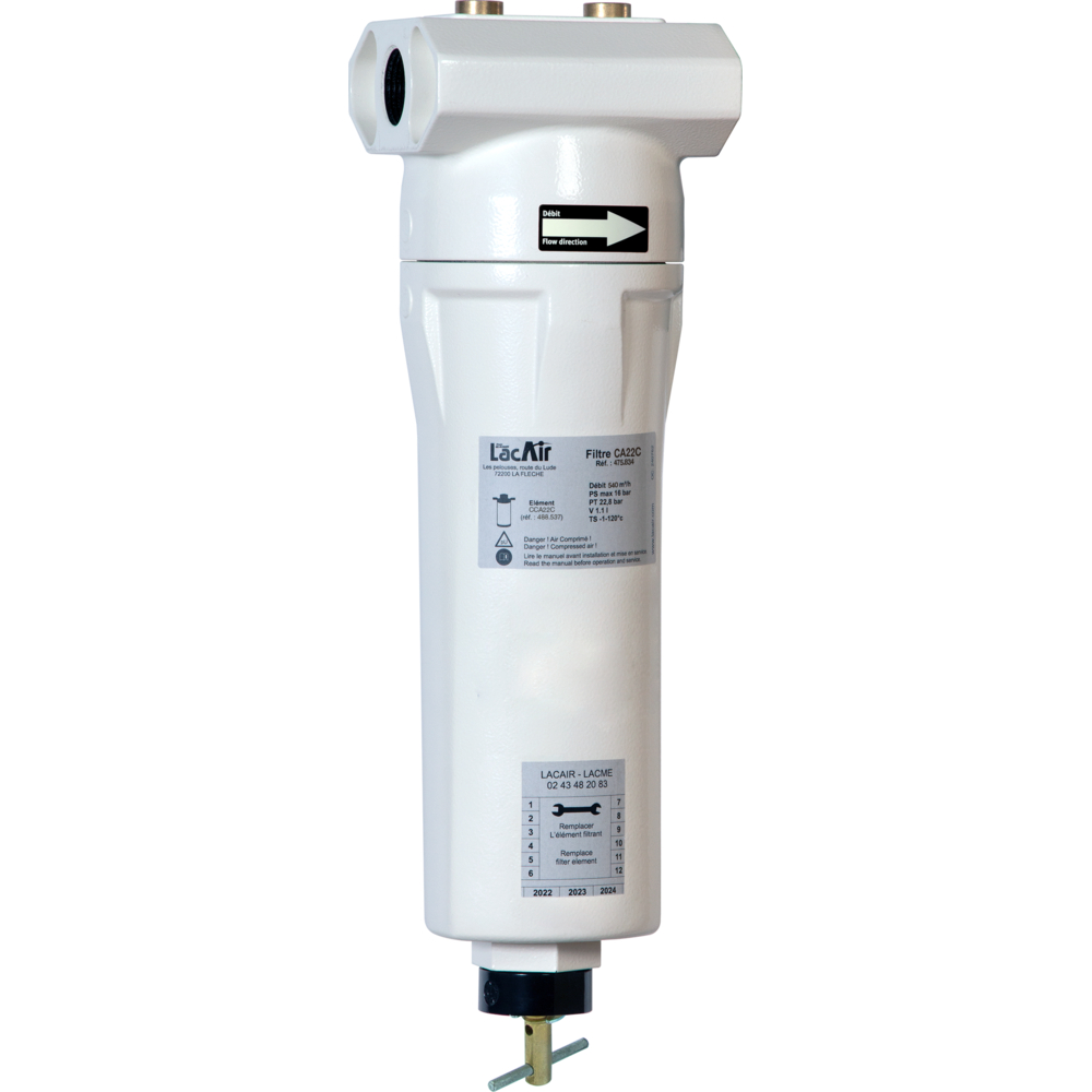 - Classe de filtration selon la norme ISO 8573-1 / 2010 : classe CA, teneur en huile 1 (1 ppm = 1 mg/m³)