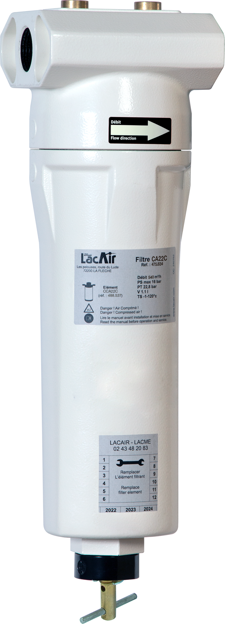 Ce filtre est capable de réduire la teneur résiduelle en huile à seulement 0,003 ppm, garantissant ainsi une qualité de filtration optimale. De plus, il est livré avec une purge externe manuelle pour un entretien facilité.
