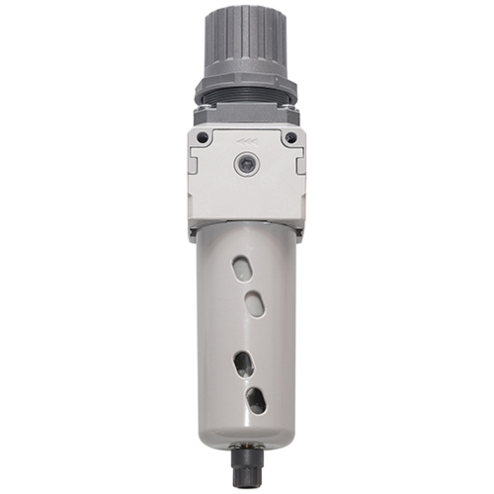 Ce filtre régulateur fonctionne en séparant les impuretés de l'air tout en maintenant une pression constante. Il est recommandé de l'installer en amont de vos outils pneumatiques pour optimiser leur performance et leur longévité. Pour une utilisation efficace, vérifiez régulièrement le niveau de contamination pour assurer son bon fonctionnement.