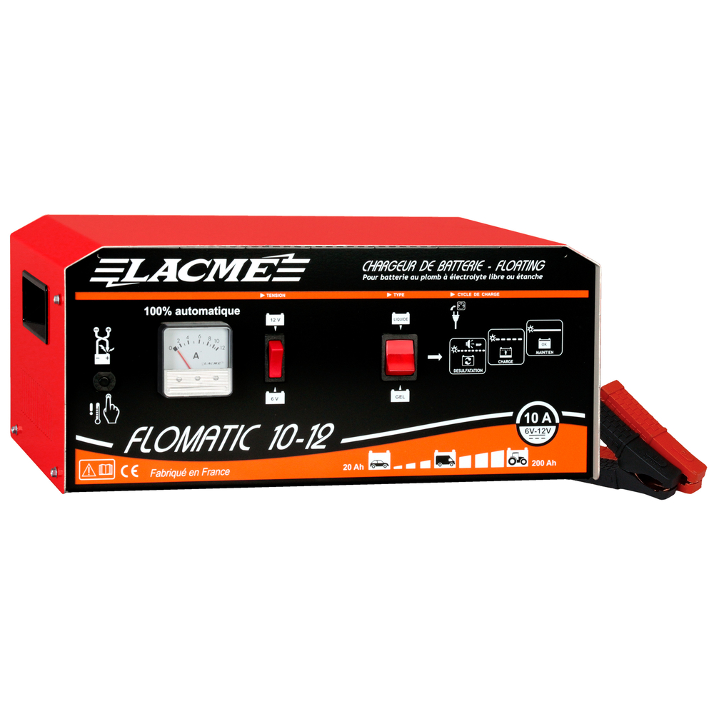 Chargeur 'Automatique' Floating 6V 12V - 10 A pour batteries de 20 à 200 Ah - Ampèremètre intégré - voyant indicateur de suivi de la charge - Protection par disjoncteur