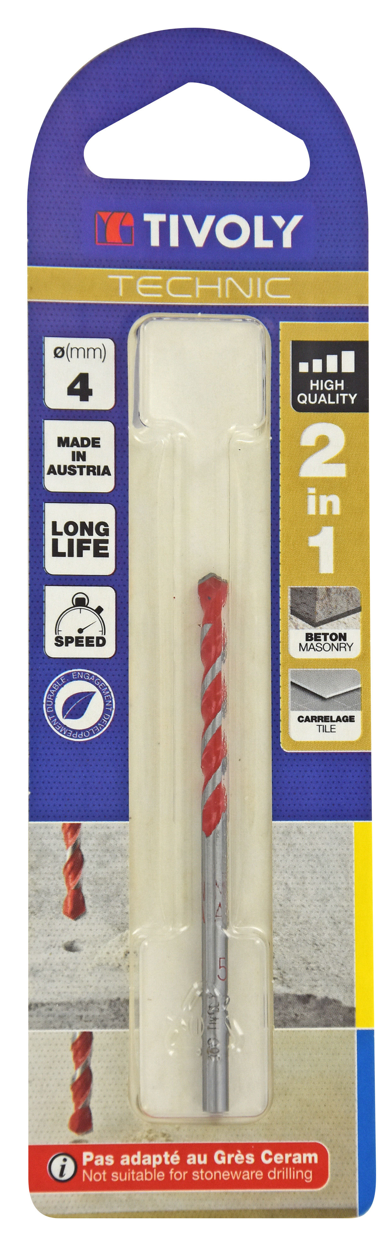Découvrez Foret 2 en 1 Bétons/Carrelages -Plaquette carbure affûtée -Goujures nervurées / L: 75 Ø: 4 TIVOLY - 10913020400 disponible à l'achat