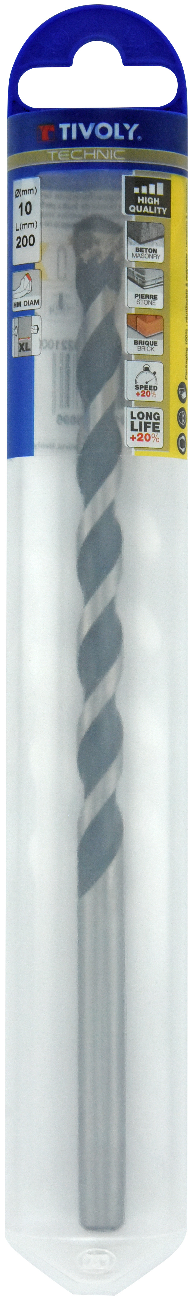 Foret bétons L200mm -Plaquette carbure affûtée diamant -Queue cylindrique / L: 200 Ø: 10 TIVOLY - 10913221000