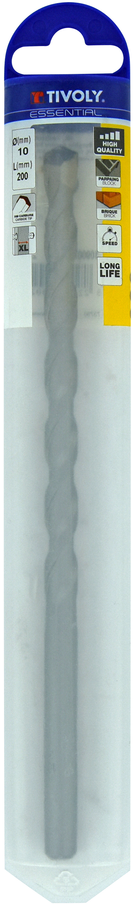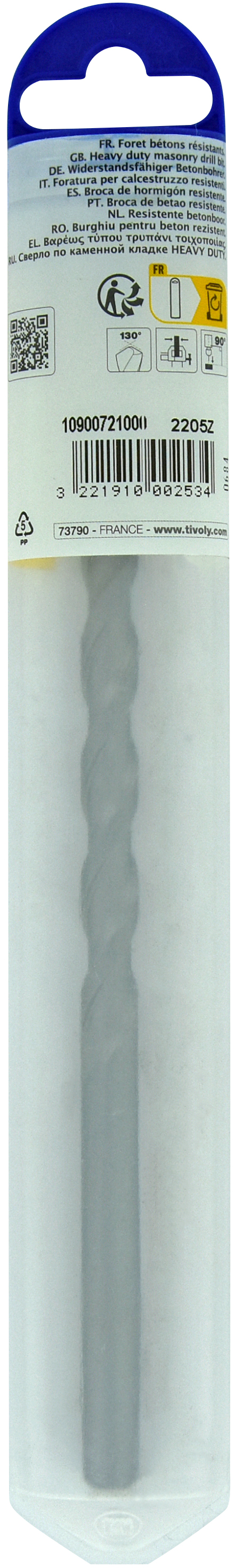 Foret bétons L200mm -Queue cylindrique (Blister) / L: 200 Ø: 10 TIVOLY - 10900721000