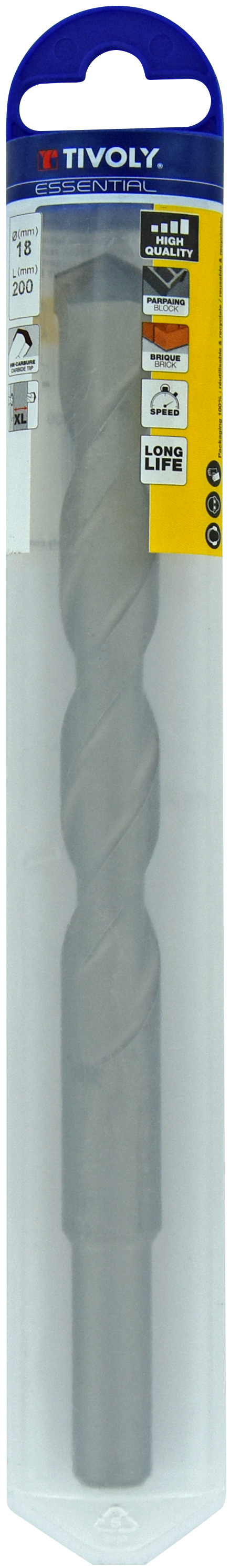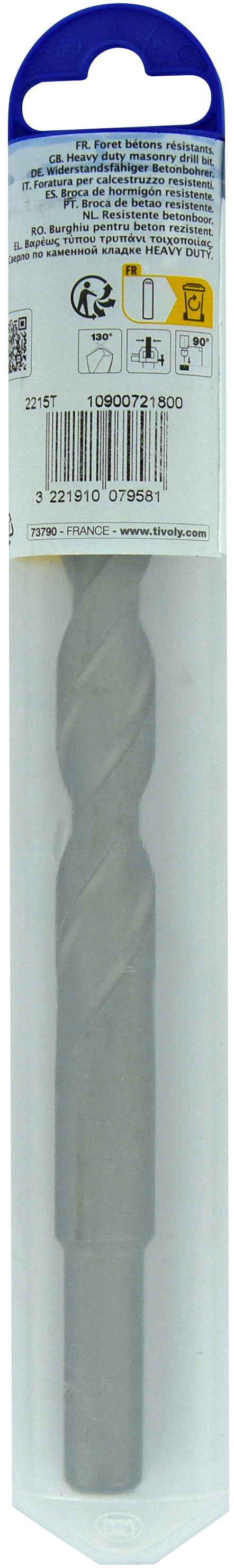 Foret bétons L200mm -Queue cylindrique (Blister) / L: 200 Ø: 18 TIVOLY - 10900721800