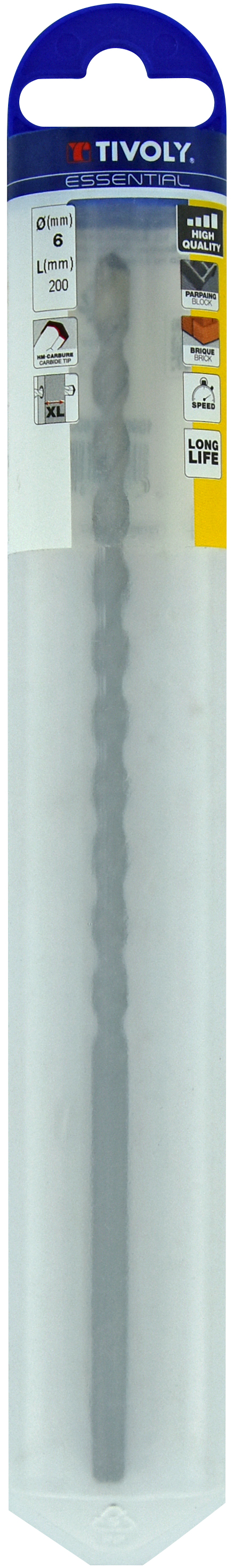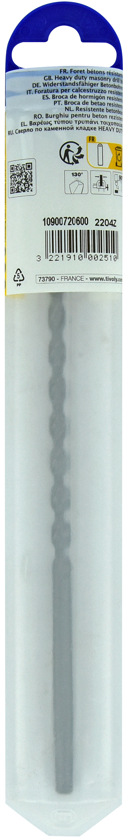 Foret bétons L200mm -Queue cylindrique (Blister) / L: 200 Ø: 6 TIVOLY - 10900720600