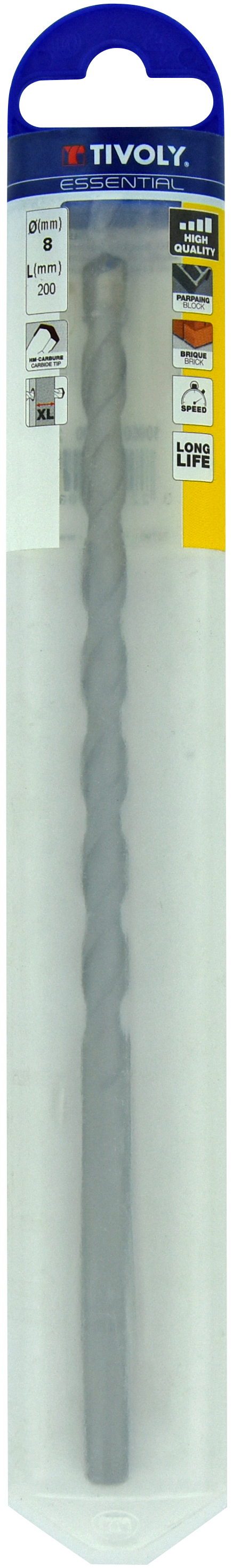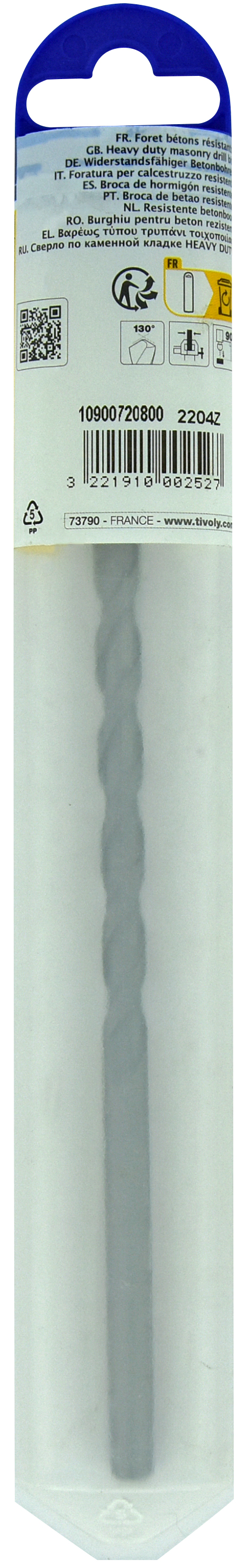 Foret bétons L200mm -Queue cylindrique (Blister) / L: 200 Ø: 8 TIVOLY - 10900720800