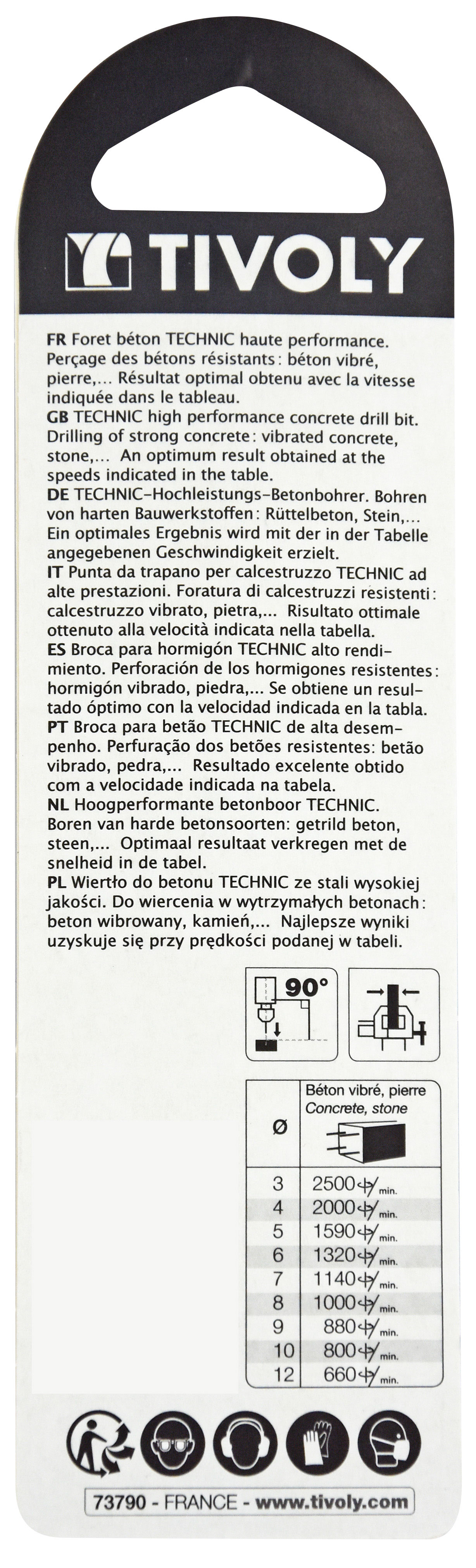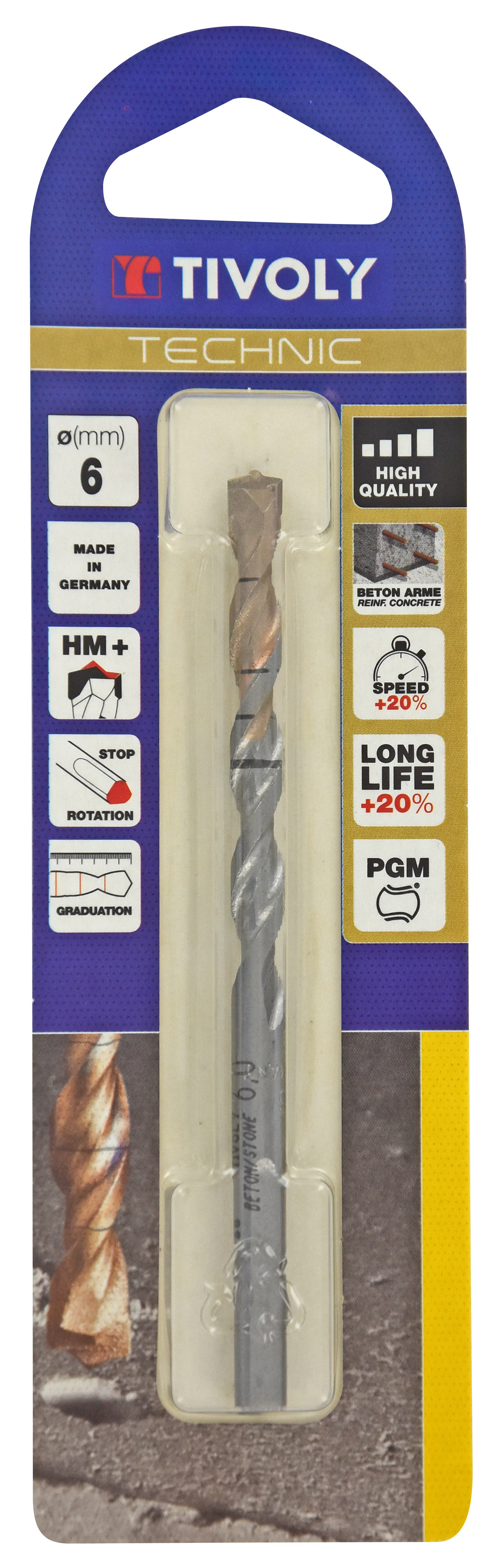 Foret bétons -Plaquette carbure pointe de centrage -Queue cylindrique 3 méplats / L: 100 Ø: 6 TIVOLY - 10960520600