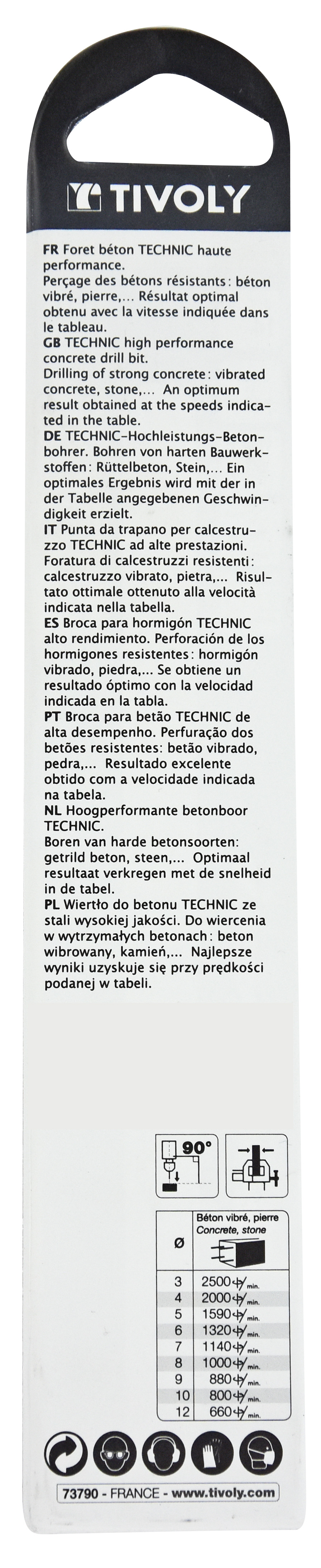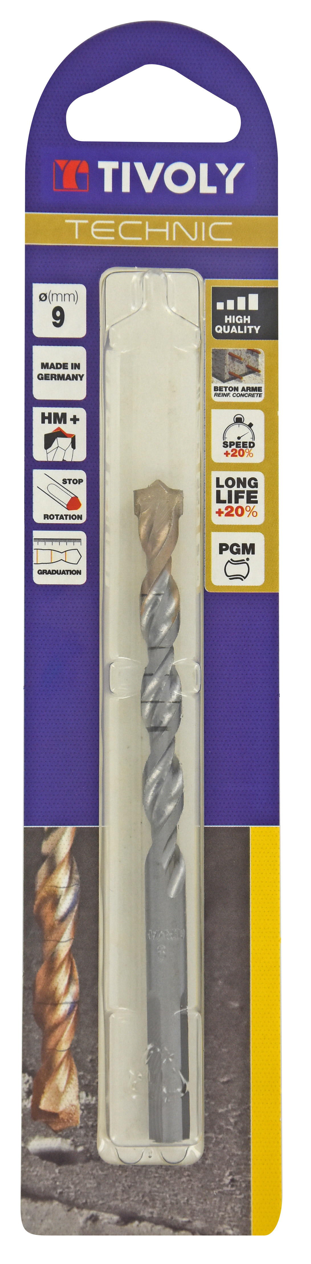 Foret bétons -Plaquette carbure pointe de centrage -Queue cylindrique 3 méplats / L: 120 Ø: 9 TIVOLY - 10960520900