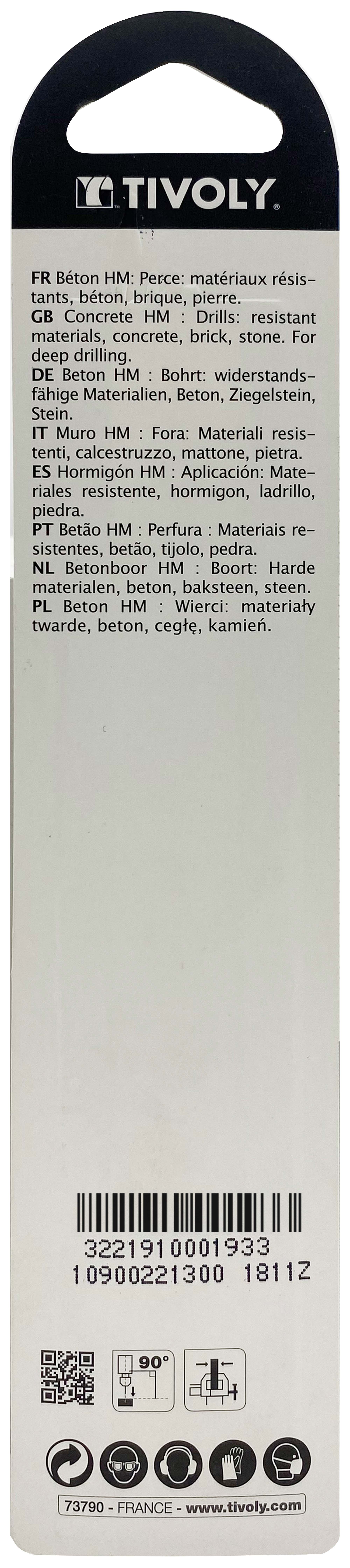 Foret bétons -Queue cylindrique (Blister) / L: 150 Ø: 13 TIVOLY - 10900221300