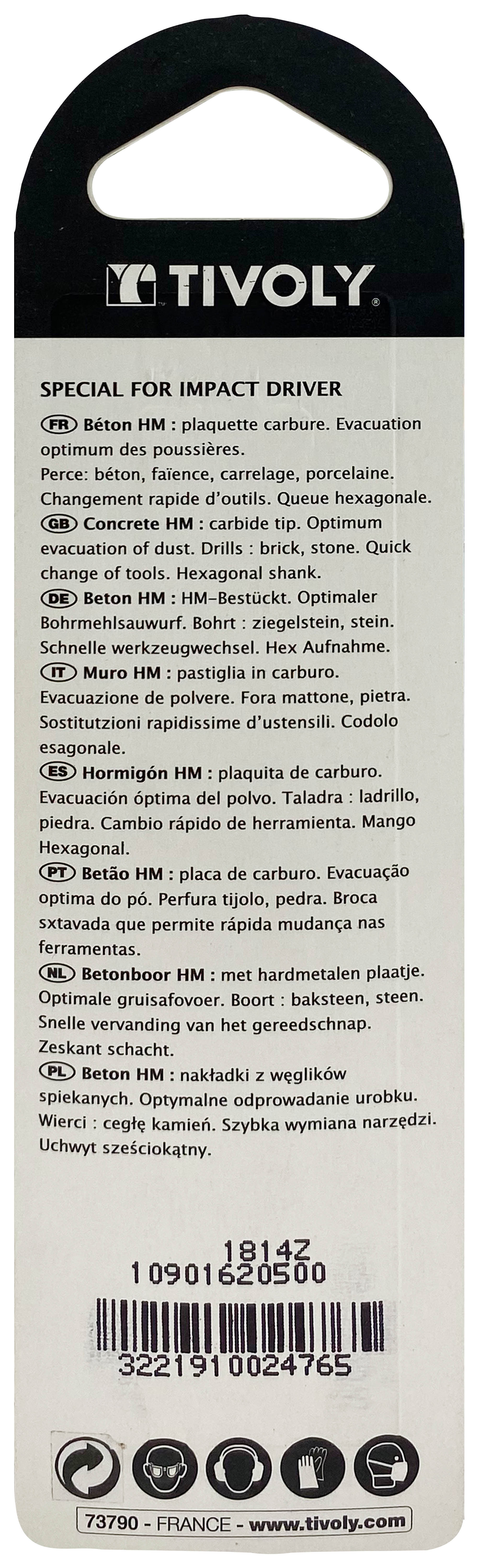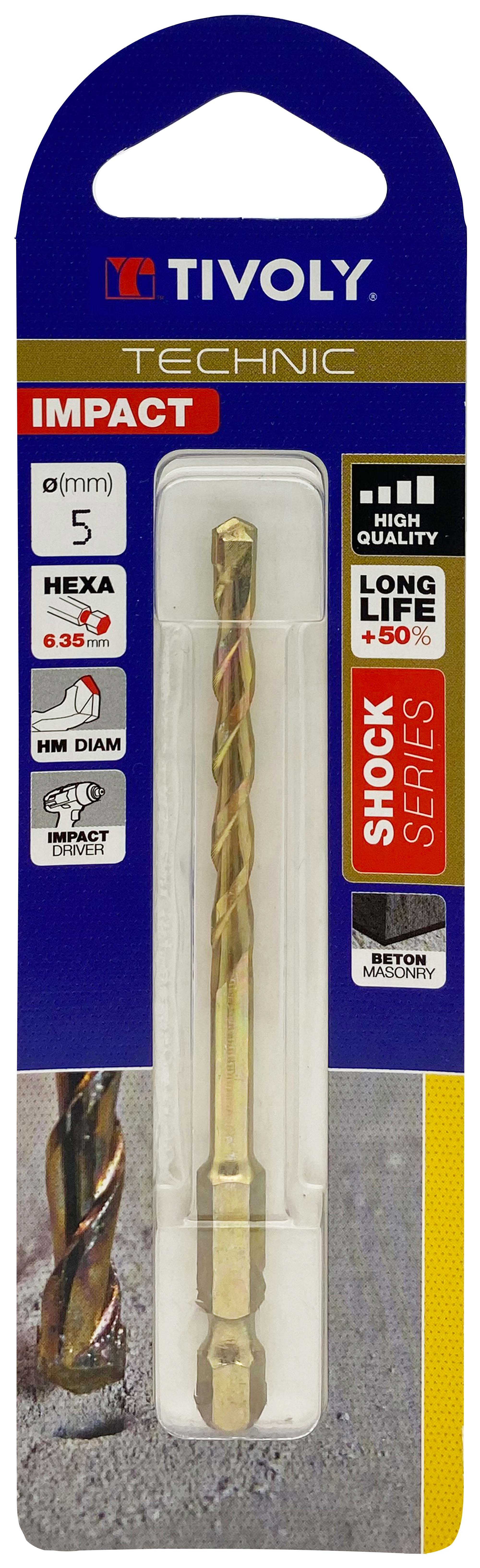 Foret bétons Shock Serie -Queue hexagonale monobloc (Blister) / L: 85 Ø: 5 TIVOLY - 10901620500
