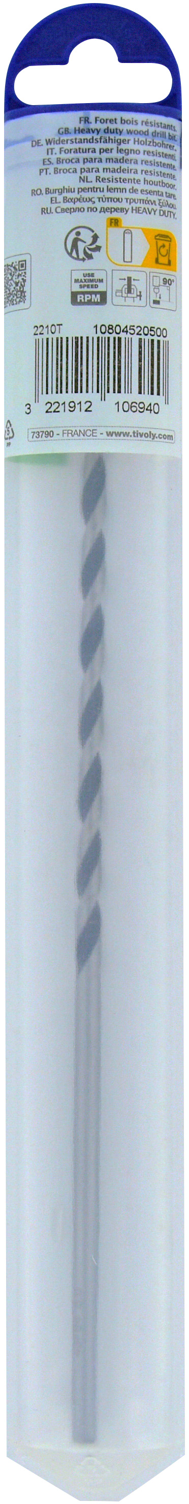 Foret bois 3 pointes L250mm -Queue cylindrique (Blister) / L: 250 Ø: 5 TIVOLY - 10804520500