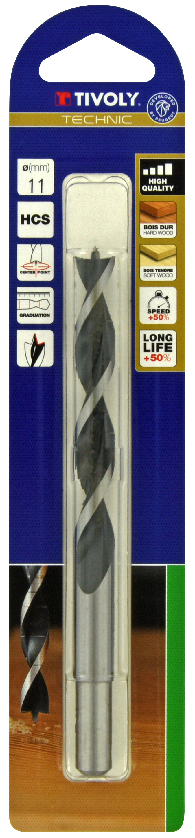 Foret bois 3 pointes -Queue cylindrique -Gradué SLR (Blister) / L: 142 Ø: 11 TIVOLY - 10863821100 Foret bois 3 pointes -Queue cylindrique -Gradué SLR (Blister) / L: 142 Ø: 11 TIVOLY - 10863821100