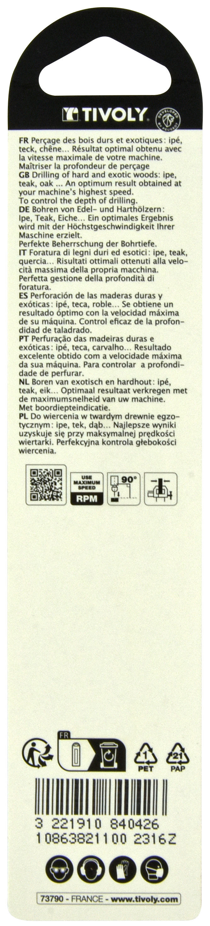 • Idéal pour des perçages rapides et propres dans tous les types de bois.